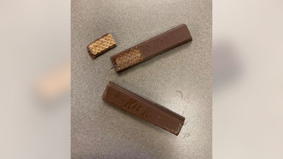 Police said that both pieces of tampered candy had a sewing needle placed inside.