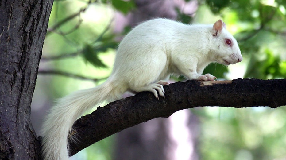 FILE - A red eyed pure white squirrel. ( Mike Adaskaveg/MediaNews Group/Boston Herald via Getty Images)
