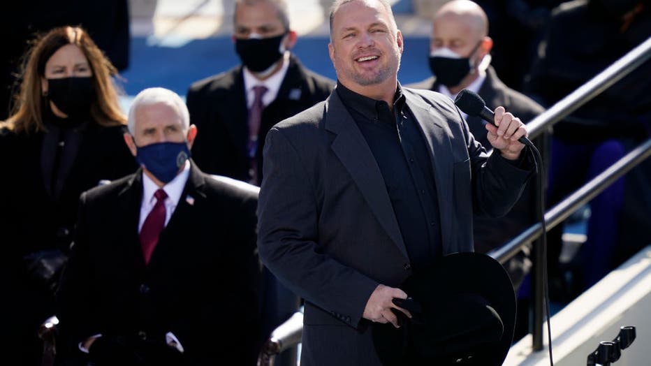 WASHINGTON, DC - JANUARY 20: Garth Brooks performs at the inauguration of U.S. President Joe Biden on the West Front of the U.S. Capitol on January 20, 2021 in Washington, DC. During today's inauguration ceremony Joe Biden becomes the 46th president