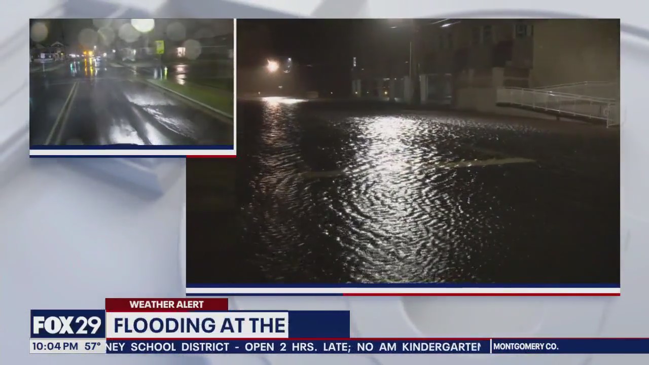 FOX 29's Chris O'Connell truly weathers the storm as he gets the latest on the heavy rain and strong wind gusts that could potentially reach 70 mph.