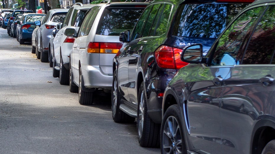 Cars parked on street in neighborhood. (Credit: GHI/Education Images/Universal Images Group via Getty Images)