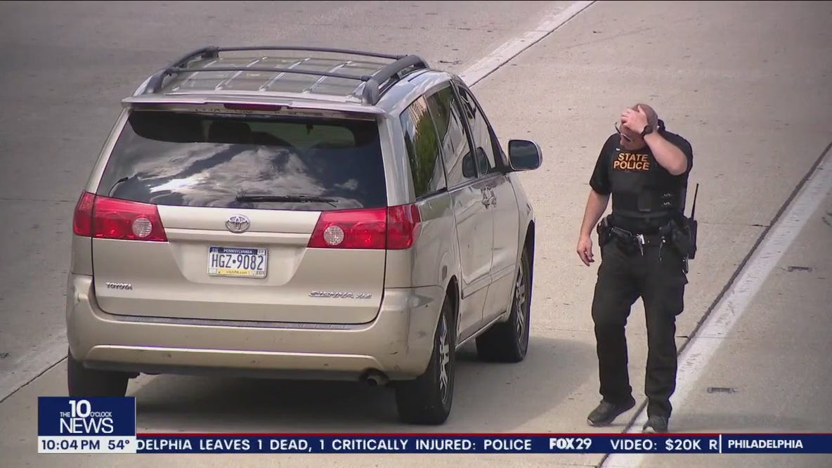 Police are searching for a motorcycle-driving gunman who they say opened fire on a minivan Monday afternoon along one of the busiest thoroughfares in Philadelphia.