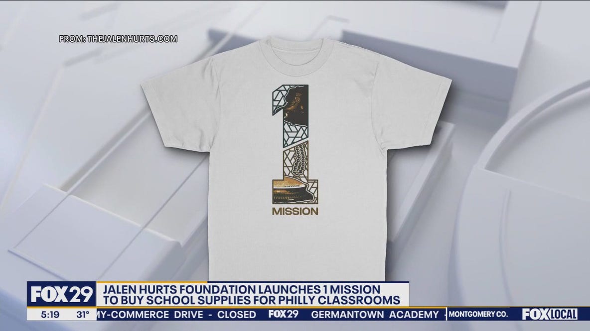 Eagles quarterback Jalen Hurts is selling t-shirts to raise money for school supplies for Philadelphia school students.