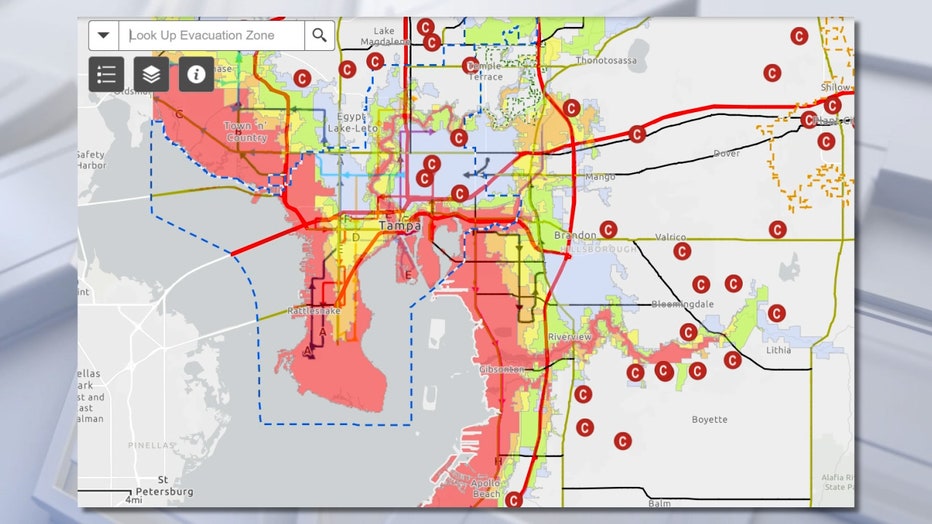 Sample hurricane evacuation zone map for the Tampa, Florida area. All coastal communicates have similar maps.
