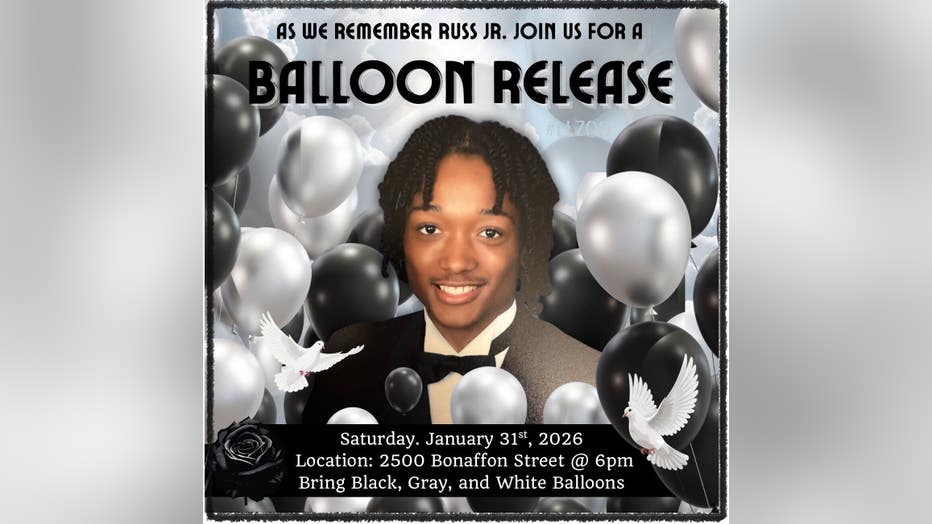 A balloon release to honor Russell Williams Jr. will occur on Saturday, January 31st at 6 pm at 2500 Bonaffon Street.