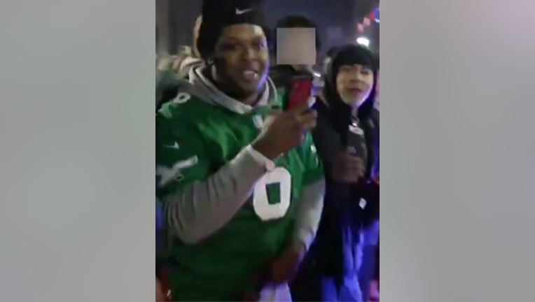 The Philadelphia Police Department shared a video clip on Wednesday showing one suspect dressed in dark clothing and another in a No. 6 Kelly Green Eagles jersey.