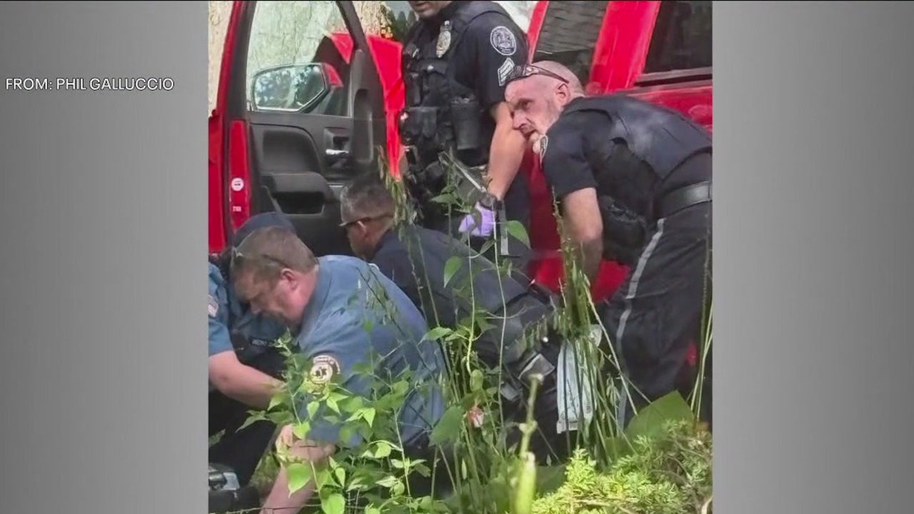 LOWER MERION TWP., Pa. - Phil Galluccio took pictures of first responders helping the driver of a pick-up truck involved in a three-vehicle crash along Montgomery Avenue, just past Woodside Road, Monday morning in Lower Merion Township.