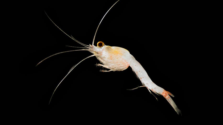 BOURGET LAKE, FRANCE - FEBRUARY 28: bloody-red mysid on February 28, 2012 in Bourget Lake, Savoie, France. The bloody-red mysid, (Hemimysis anomala), a shrimp-like crustacean in the Mysida order, native to the Ponto-Caspian region, which has been spr