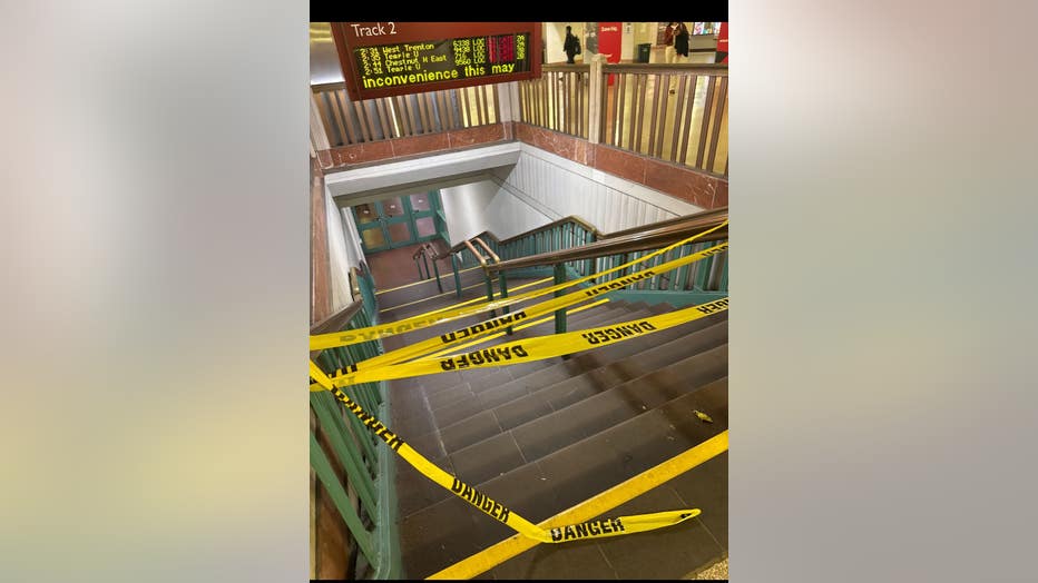 Steps at Surburban Station were blocked off with tape Thursday | Photo courtesy of Christina Martinos