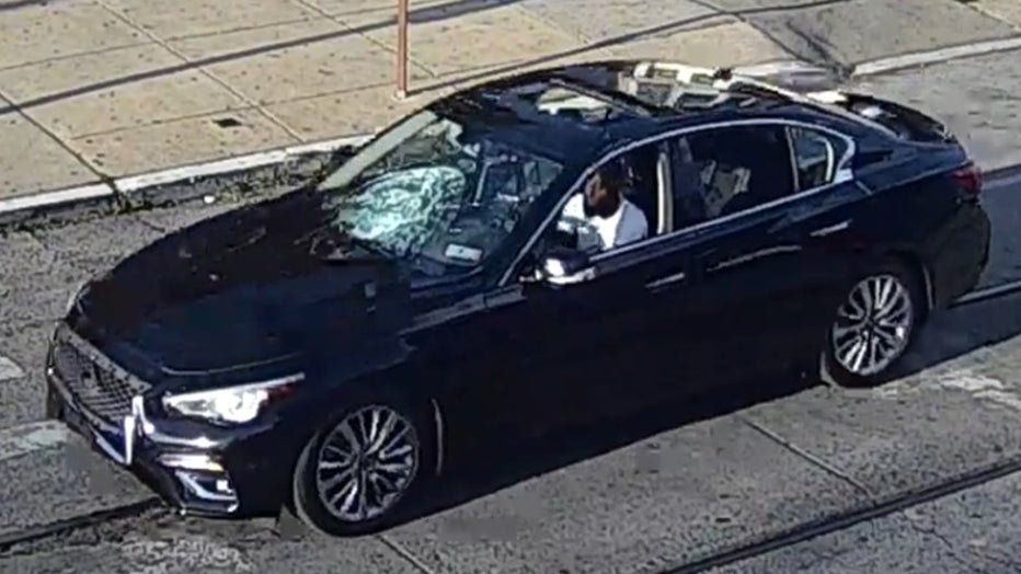 A photo of the suspect's vehicle shared by police on Monday shows heavy damage to the front windshield.
