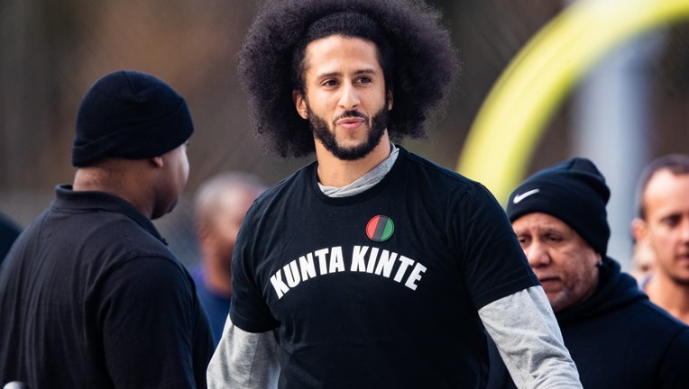 RIVERDALE, GA - NOVEMBER 16: Colin Kaepernick looks on during his NFL workout held at Charles R Drew high school on November 16, 2019 in Riverdale, Georgia. (Photo by Carmen Mandato/Getty Images)