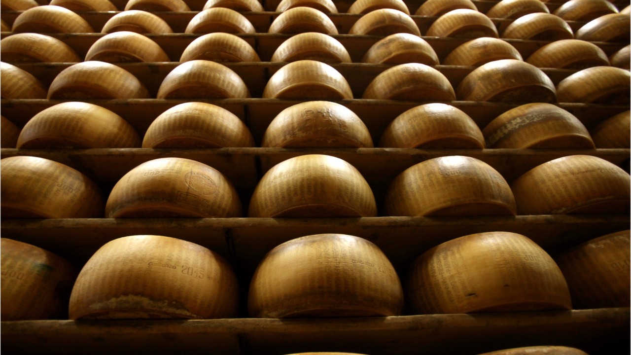 Parmigiano cheese is shown in a file photo taken at a Parmigiano Reggiano factory in the Dall'Aglio Farm on September 1, 2018 in Gattatico, near Reggio Emilia. (Photo credit: MARCO BERTORELLO/AFP/Getty Images)