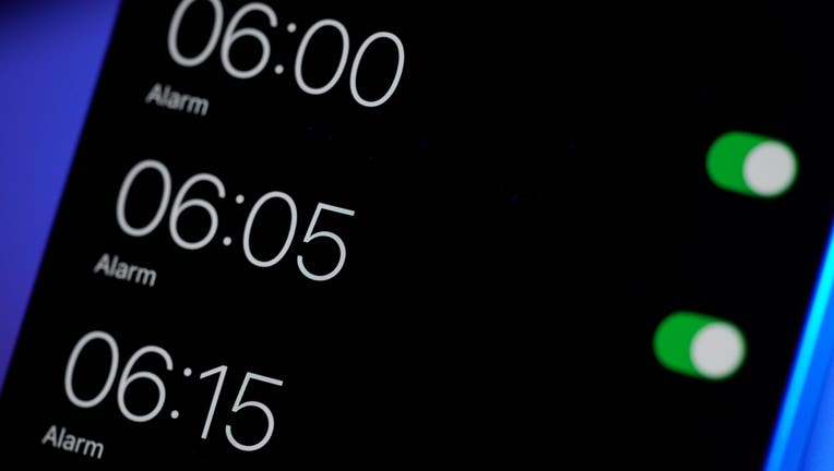 An alarm clock set forward one hour symbolizes the upcoming start of daylight saving time on March 29, 2025. Clocks "spring forward" at 2 a.m., resulting in longer daylight hours in the evening. (Photo by Jaap Arriens/NurPhoto via Getty Images)