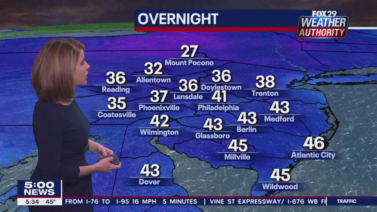 FOX 29 Weather Authority 5 p.m. Thursday forecast.