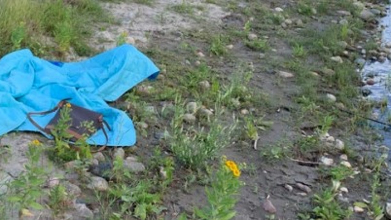 The items included a blanket on the ground, a purse with ID, and a broken fishing pole lying halfway in the water.