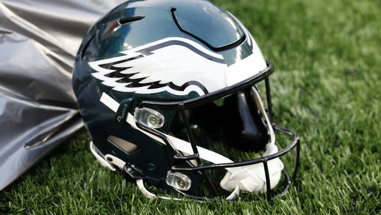 FOXBOROUGH, MA - AUGUST 15: Eagles helmet before a preseason game between the New England Patriots and the Philadelphia Eagles on August 15, 2024, at Gillette Stadium in Foxborough, Massachusetts. (Photo by Fred Kfoury III/Icon Sportswire via Getty I