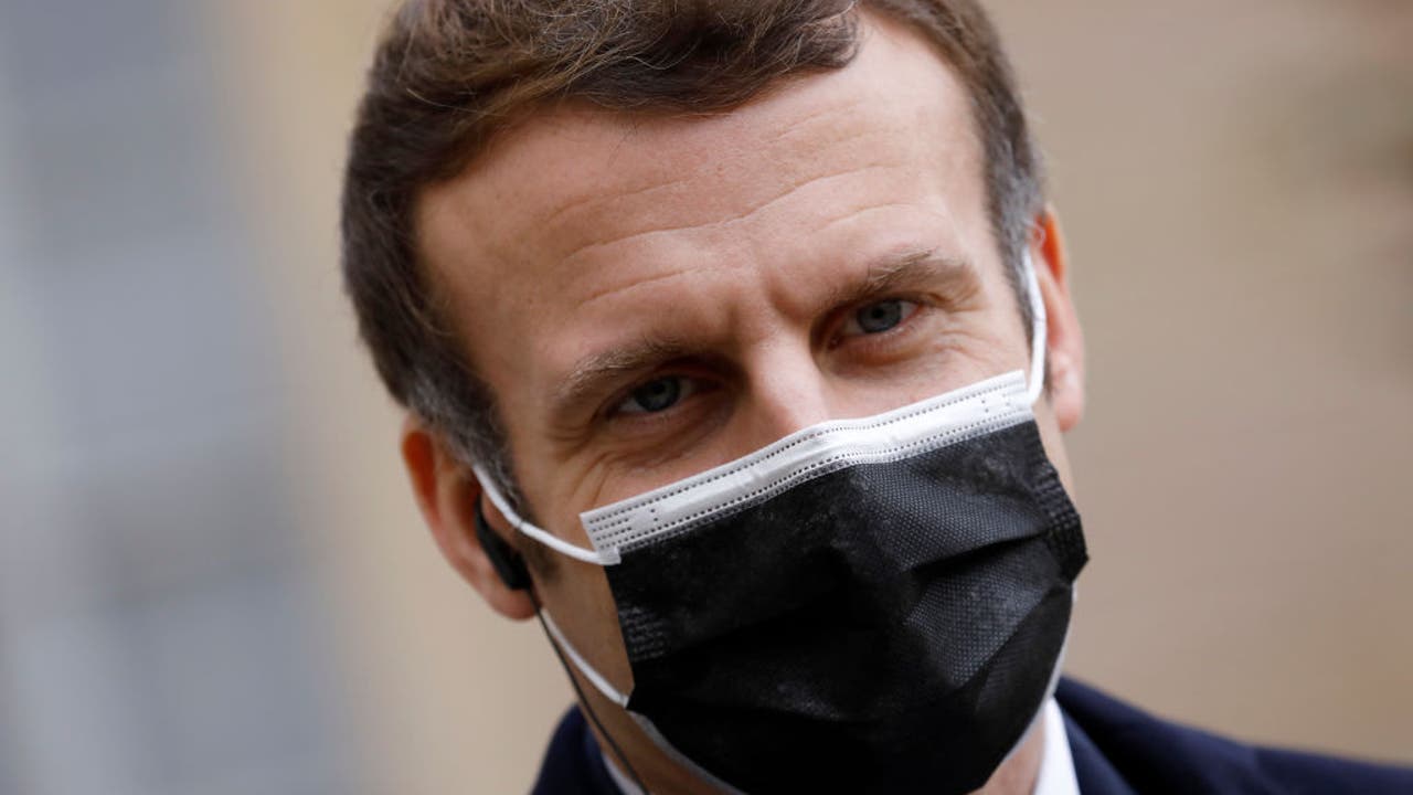 President Emmanuel Macron is seen wearing a mask during a press conference on Dec. 16, 2020 in Paris, France. (Photo by Antoine Gyori /Corbis via Getty Images)