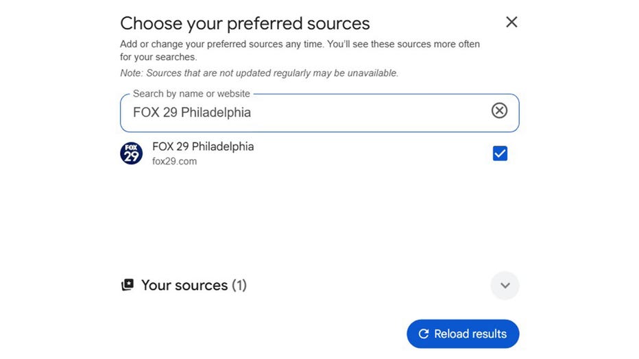 Click ‘reload results’ to save your choice, and you’ll immediately see more articles from FOX 29 Philadelphia in your results.