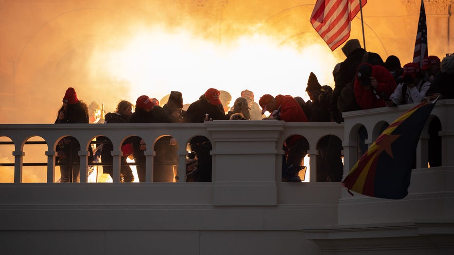 WASHINGTON,DC-JAN6:A flash bang is fired at supporters of President Trump who stormed the United States Capitol building. (Photo by Evelyn Hockstein/For The Washington Post via Getty Images)