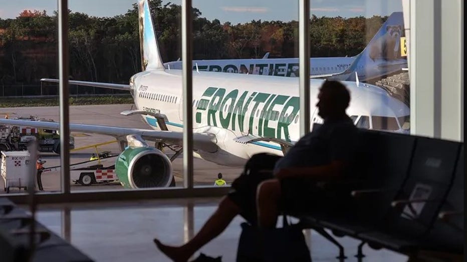 A Frontier Airlines plane seen at Cancun International Airport. (Artur Widak/NurPhoto via Getty Images)