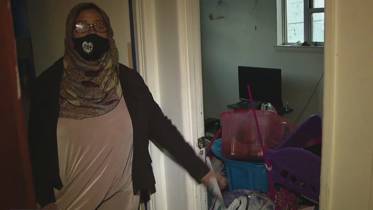 Inside her home, she showed FOX 29's Shawnette Wilson jewelry left on the floor, a TV she says is damaged after it appears the person couldn't get it off the wall and a door that was locked had been kicked in.