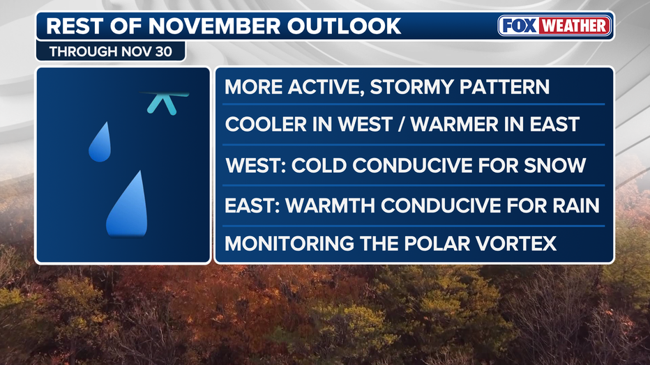 This graphic displays the weather outlook for the rest of November. (FOX Weather)