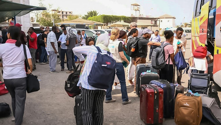 In dramatic evacuation operations, convoys of foreign diplomats, civilian teachers, students, workers and families from dozens of countries wound past combatants at tense front lines in the capital of Khartoum to reach extraction points. Others drove hundreds of miles to the country's east coast. A stream of European, Mideast, African and Asian military aircraft flew in all day Sunday and Monday to ferry them out.