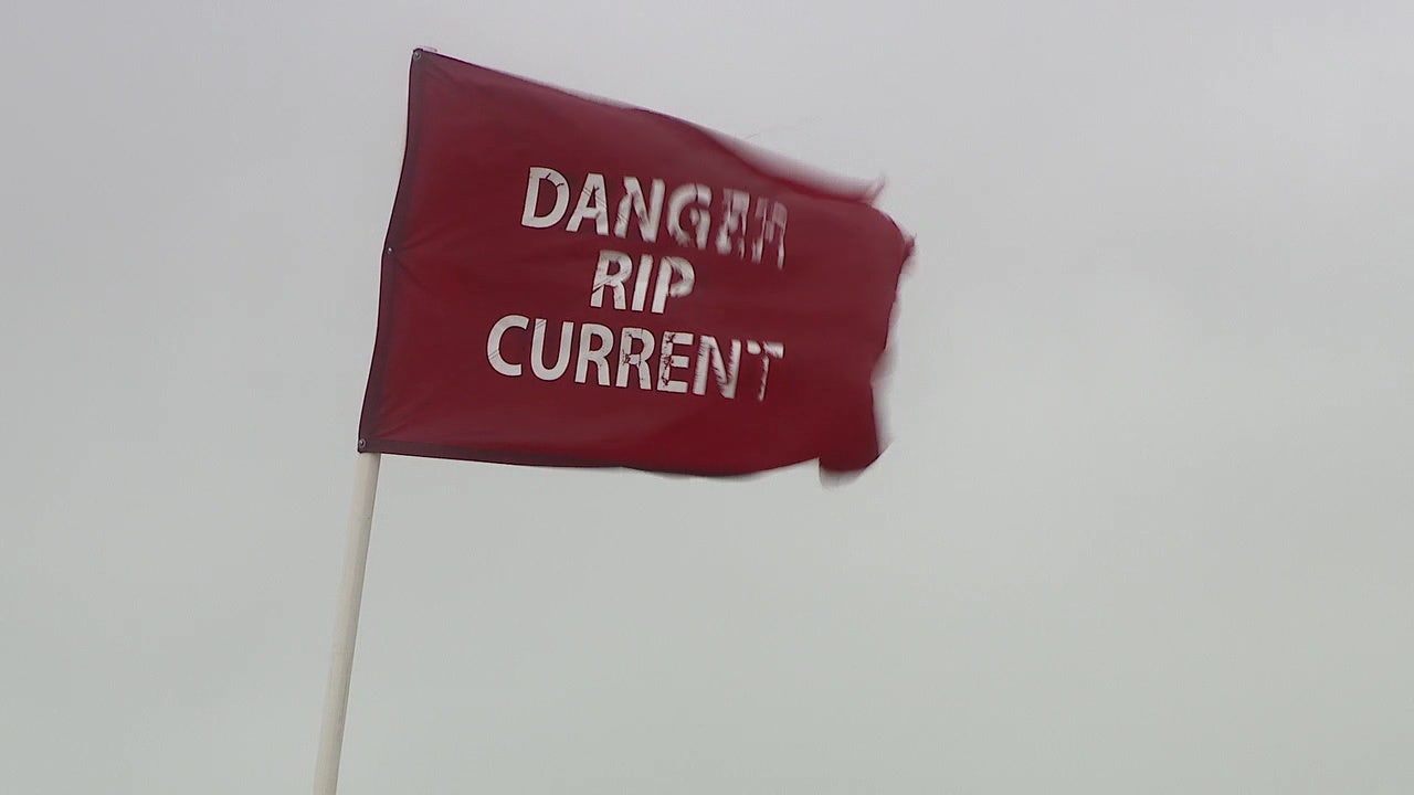 In North Wildwood, red "Dangerous Rip Currents" flags were slapping in the gusty winds at the entrance to many of the beaches that are notorious for erosion.