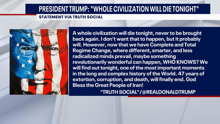 Iran war latest: President Trump warns, a 'whole civilization will die tonight' as 8 p.m. deadline looms
