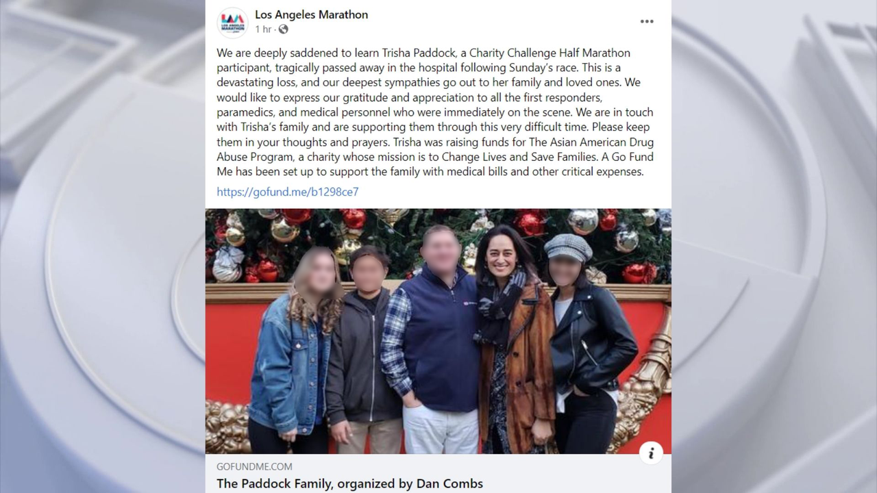 A GoFundMe page has been launch for Tricia Paddock's family. Paddock died at the hospital after collapsing at the finish line of the LA Marathon.