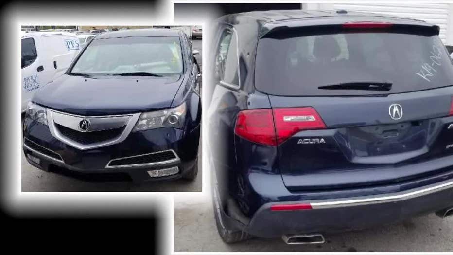 Photo of the 2011 dark blue Acura MDX that was stolen at the Christiana Fashion Center.
