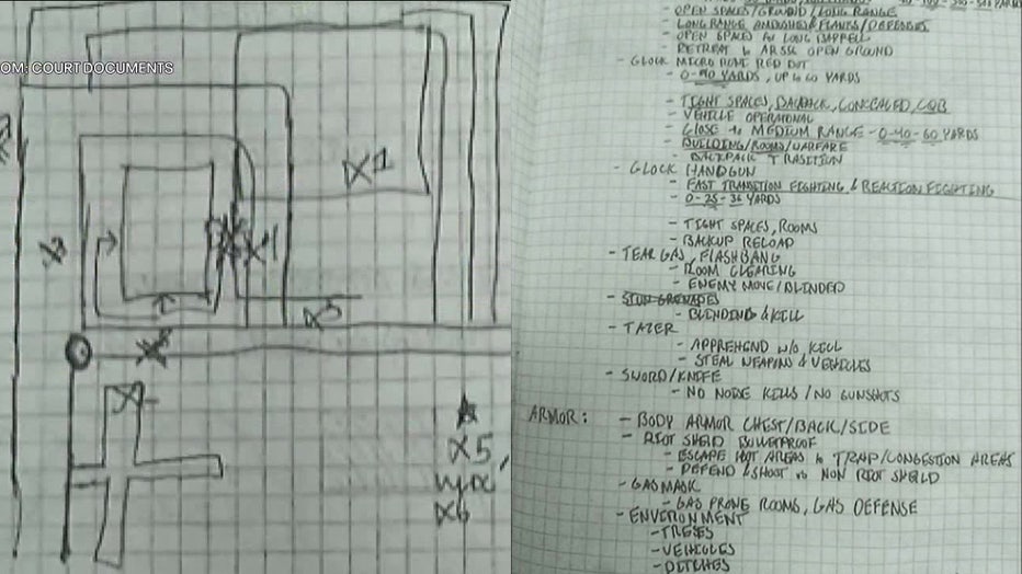 WILMINGTON - Newly released court documents show notebook pages scrawled with attack plans investigators allege were written by a University of Delaware undergrad student who was plotting an assault on the school's police department.