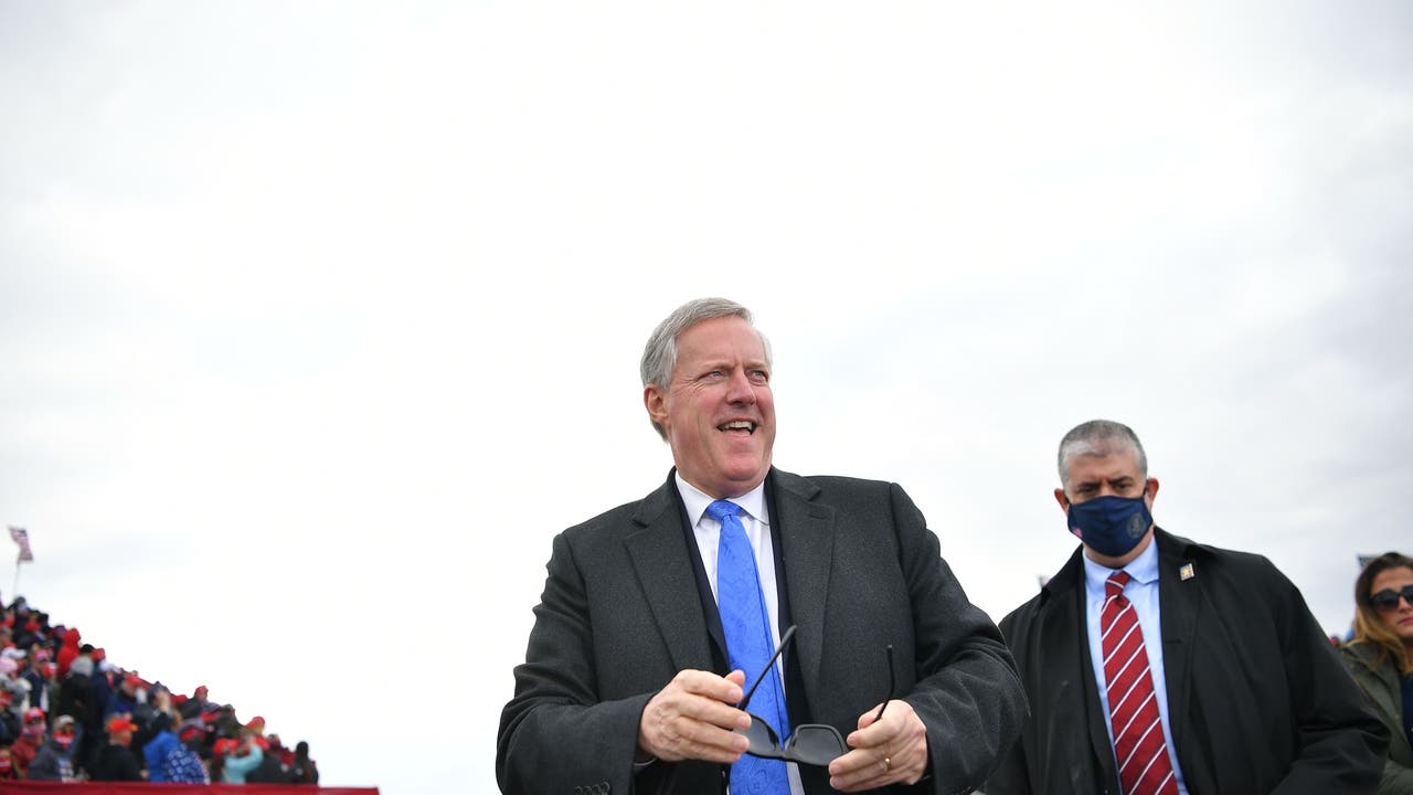 White House Chief of Staff Mark Meadows arrives for a "Make America Great Again" rally at Reading Regional Airport in Reading, Pennsylvania, on October 31, 2020. (Photo by MANDEL NGAN / AFP) (Photo by MANDEL NGAN/AFP via Getty Images)