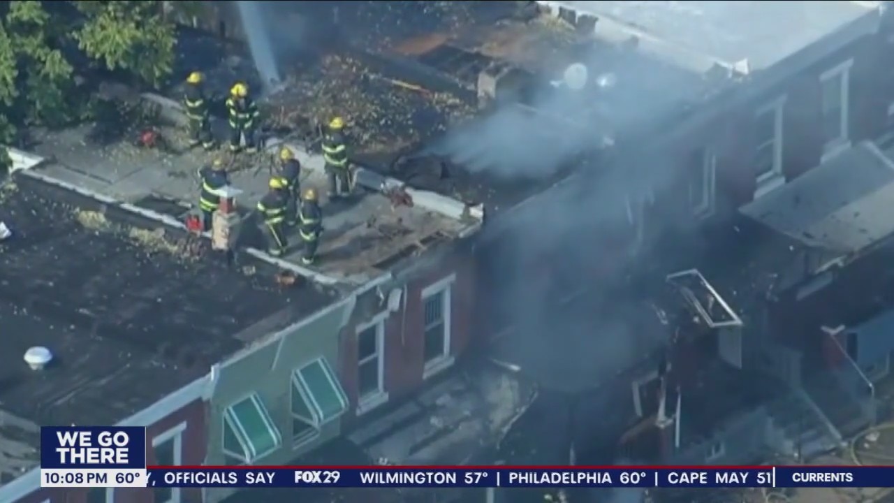 Fire officials say dozens are displaced after a fire ripped through a string of rowhomes in West Philadelphia Tuesday afternoon.