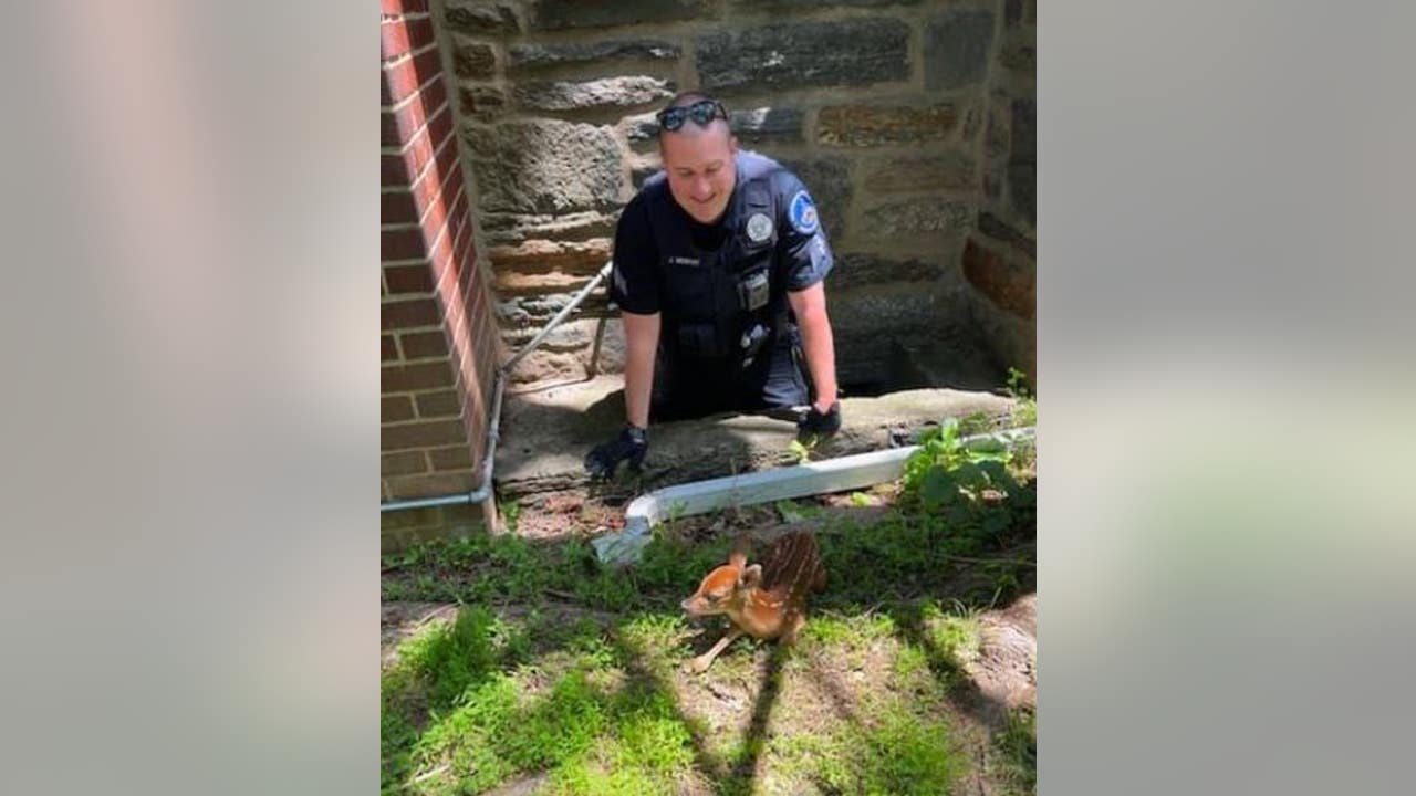 Pennsylvania police officer rescues fawn heard yelling in window well