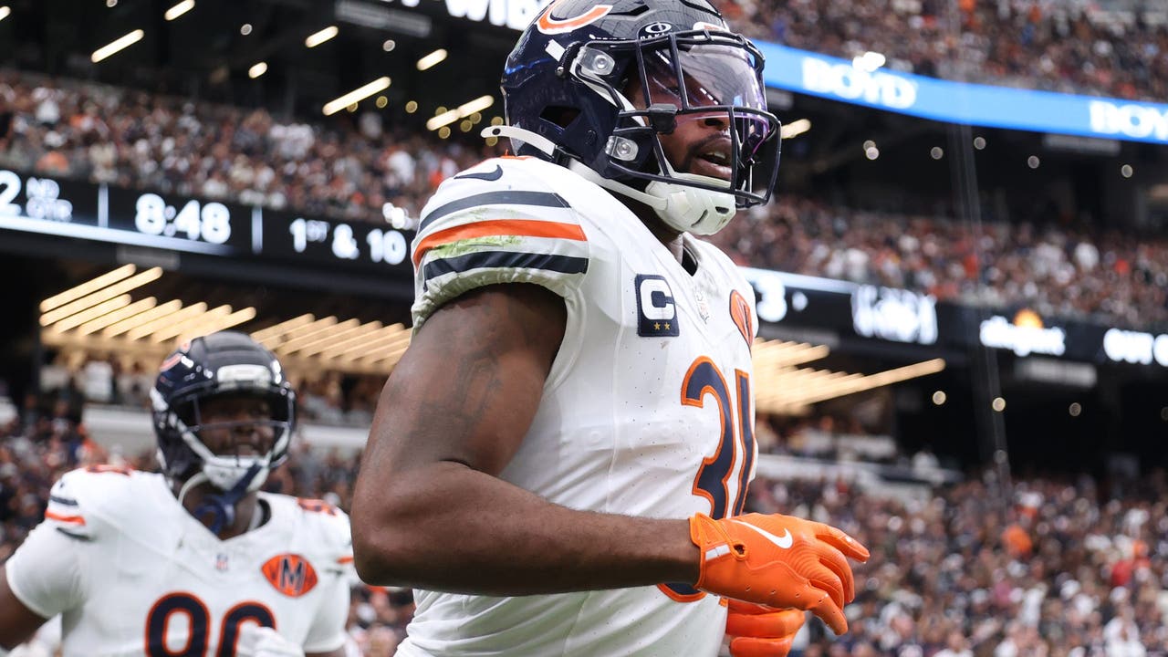 LAS VEGAS, NEVADA - SEPTEMBER 28: Kevin Byard #31 of the Chicago Bears looks on after an interception during a game against the Las Vegas Raiders at Allegiant Stadium on September 28, 2025 in Las Vegas, Nevada. (Photo by Ian Maule/Getty Images)