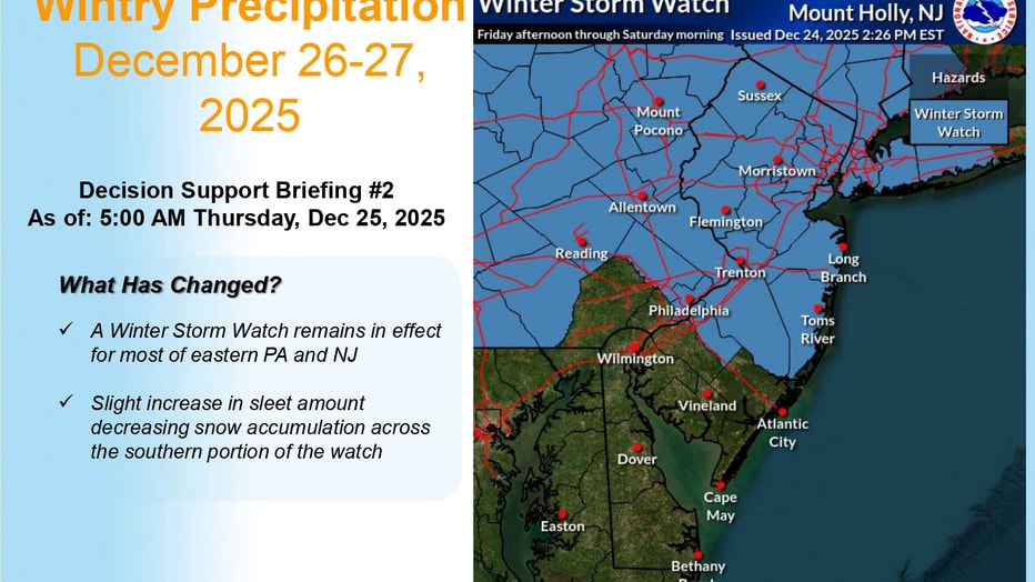 Winter storm watches issued for Pennsylvania and New Jersey for Friday, Dec. 26, 2025. (Credit: National Weather Service)