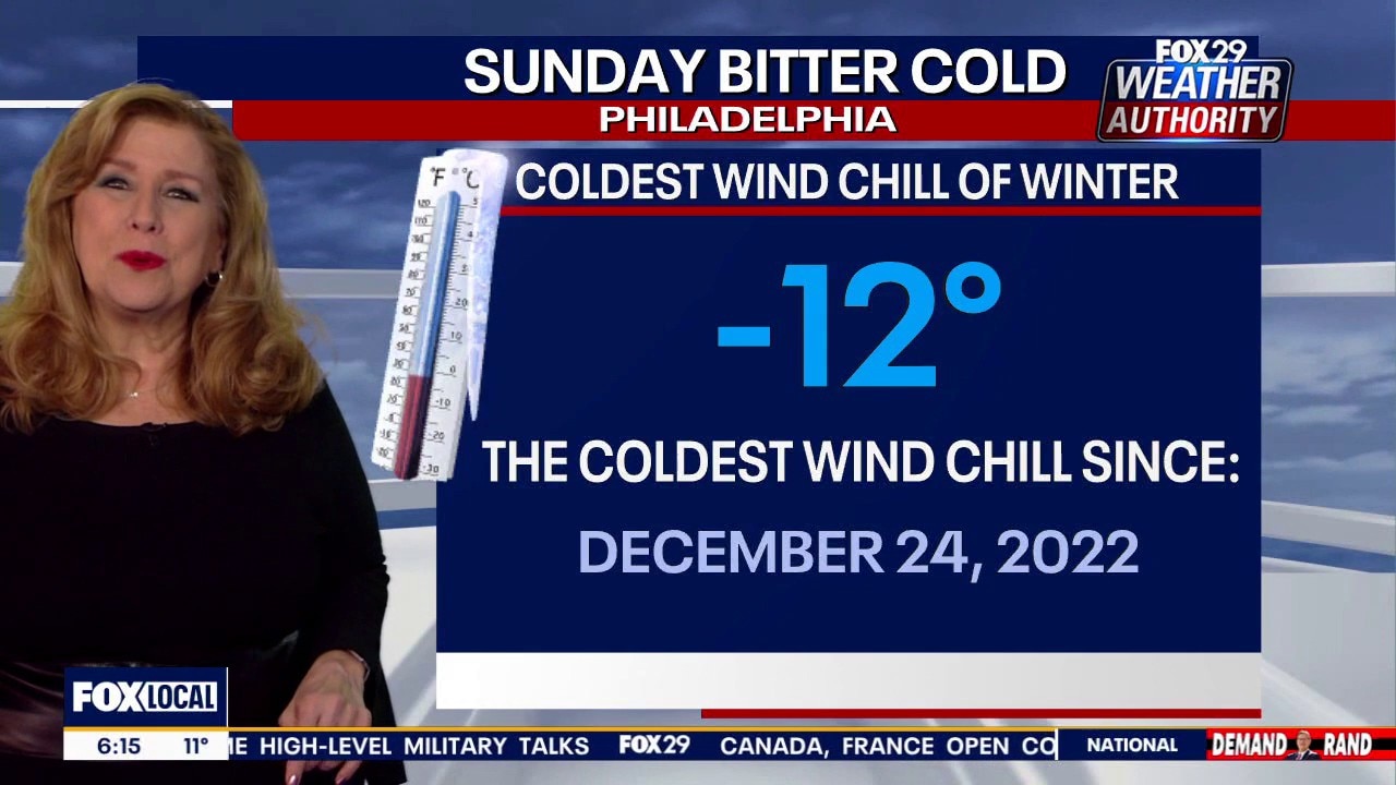 The Philadelphia area experienced a -12 degree wind chill over the weekend, which forecasters say is the coldest wind chill since Christmas Eve 2024.