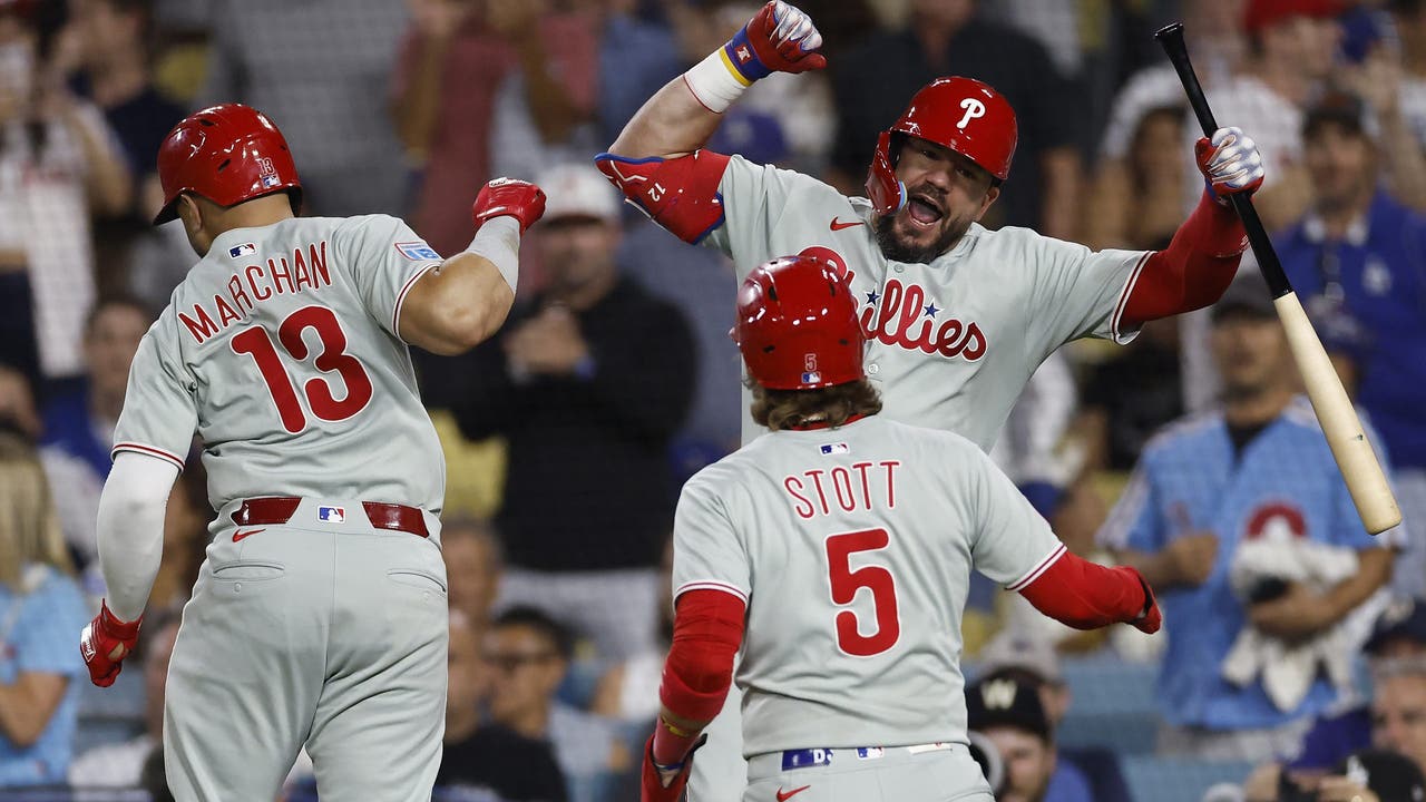 The Phillies enter the postseason having clinched the NL East in dramatic fashion — on a 10th-inning sacrifice fly by J.T. Realmuto in a 6–5 win over the Dodgers. Their regular season battles included a 4–2 edge over L.A.