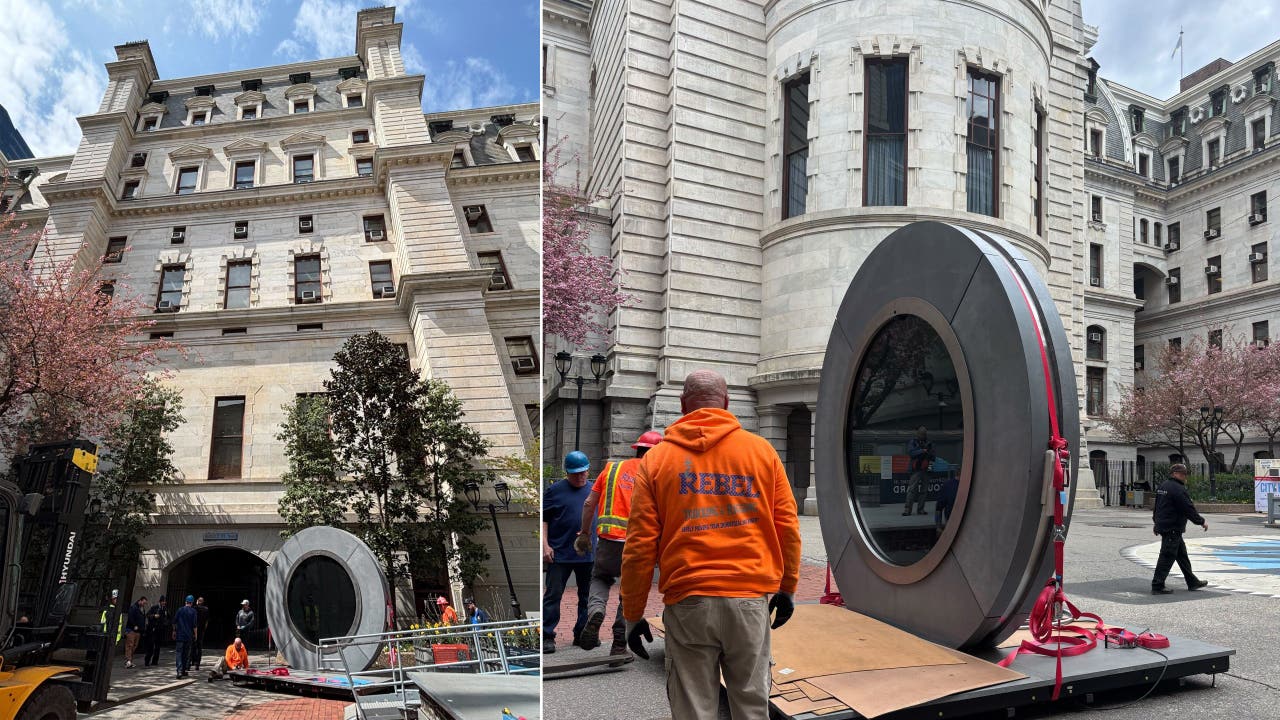 Philly's ‘Portal to the World’ arrived at its new home on Monday - the City Hall Courtyard.
