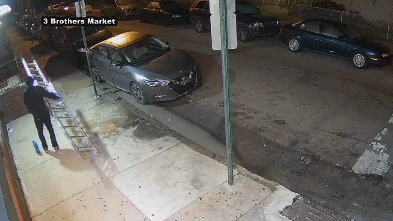 A man with a ladder is seen on video walking up to Assad Mohamed’s 3 Brothers Market at 28th and Moore. He clambers to the roof and moments later it’s on fire.