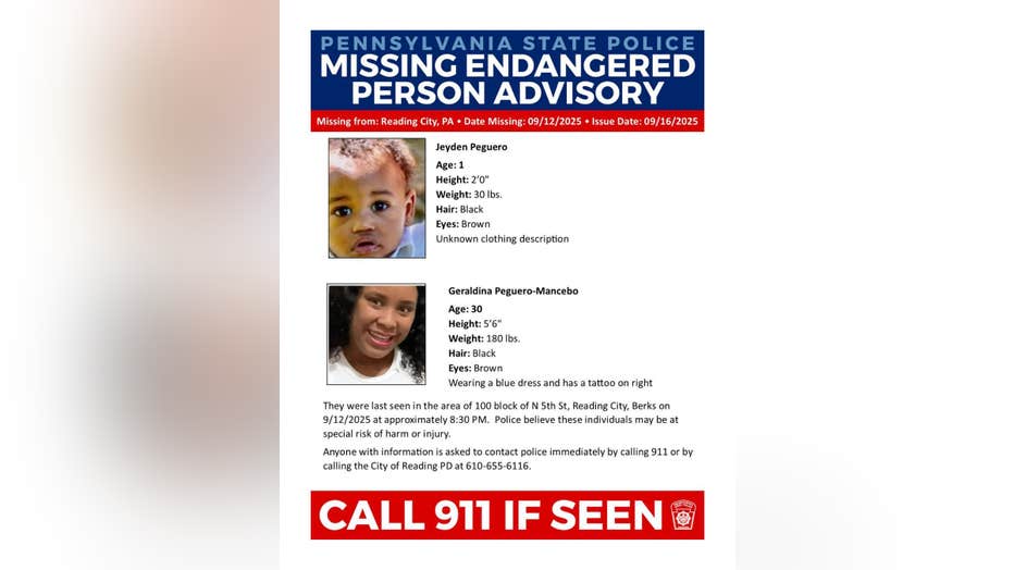Geraldina Peguero-Mancebo, 30, and 1-year-old Jeyden Peguero were last seen in the area of the 100 block of North 5th Street in Reading the night of Sept. 12.