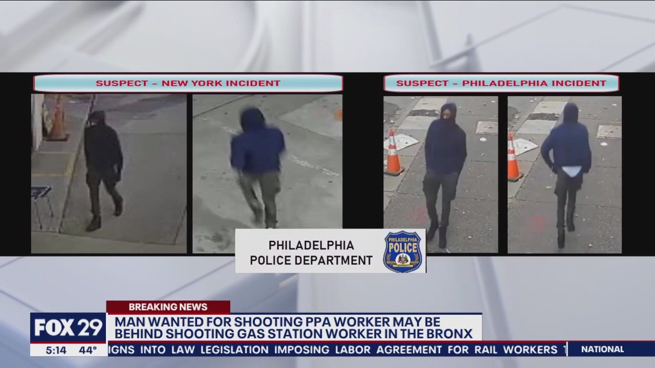 PHILADELPHIA - Police are exploring the possibility that a suspect wanted for shooting a Philadelphia Parking Authority Officer is connected to a shooting at a gas station in The Bronx days earlier.