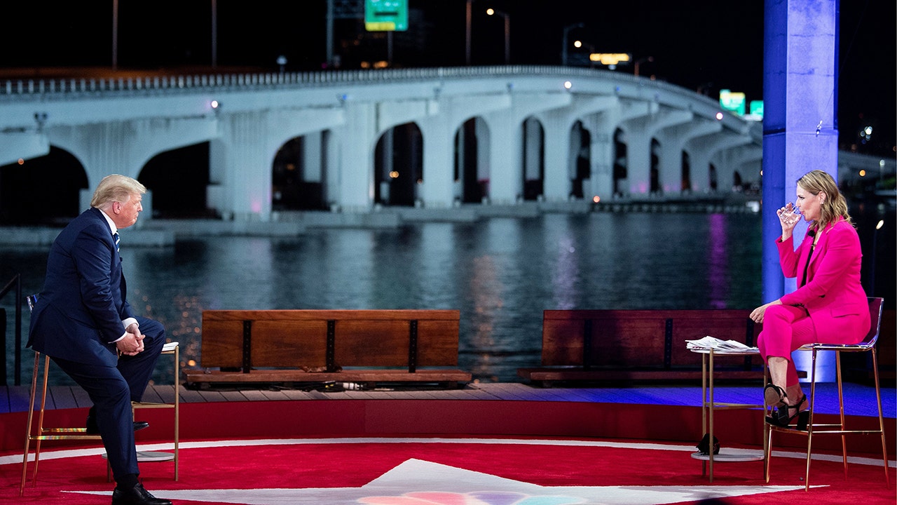 MIAMI, Fla. - President Donald Trump appeared on NBC from Miami Thursday for a town hall after backing out of plans for a virtual presidential faceoff following his COVID-19 diagnosis.