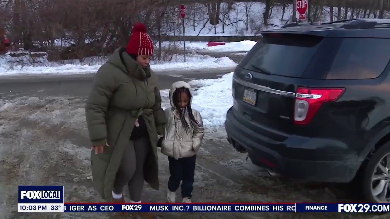 PHILADELPHIA - Parents and residents in Roxborough say snow left on sidewalks and in parking lots is making it dangerous for Shawmont Elementary School students to get to class, but a local non-profit stepped in to help clear the way.