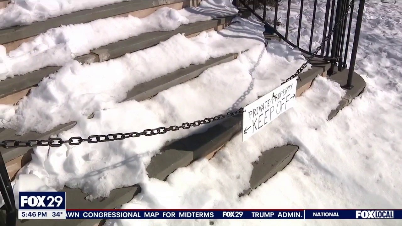 BRISTOL TOWNSHIP, Pa. - Surveillance cameras at the historic Bolton Mansion in Bristol Township captured people sledding down the property’s steps after the latest snowfall, causing new damage to the recently renovated site.