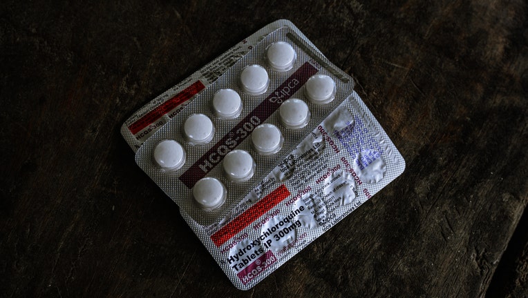 FILE - In this photo illustration, tablets on a blister pack of Hydroxychloroquine are displayed on April 22, 2020 in Tehatta, West Bengal, India. (Photo Illustration by Soumyabrata Roy/NurPhoto via Getty Images)