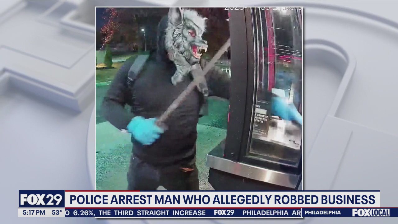 A man has been arrested after police say he robbed a South Jersey business while wearing a wolf mask.