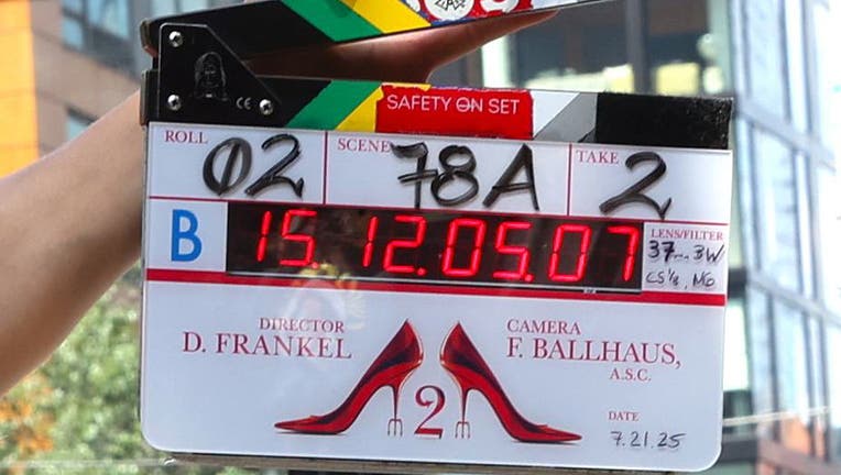 NEW YORK, NY - JULY 21: View of the clapper is seen on the set of "Devil Wears Prada 2" in Chelsea, Manhattan on July 21, 2025 in New York City. (Photo by Jose Perez/Bauer-Griffin/GC Images)