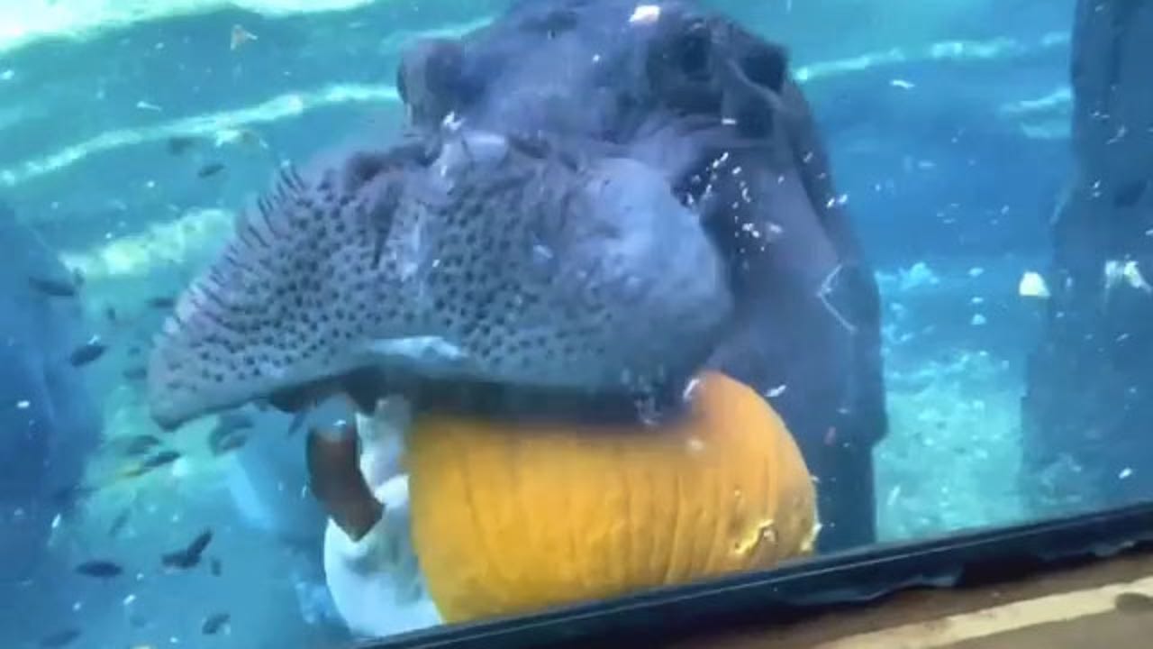 A hippopotamus at the San Antonio Zoo enjoyed some pumpkins ahead of Halloween.